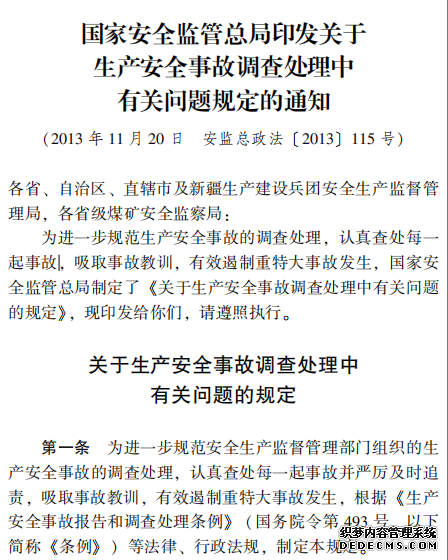 國(guó)家安全監(jiān)管總局印發(fā)關(guān)于 生產(chǎn)安全事故調(diào)查處