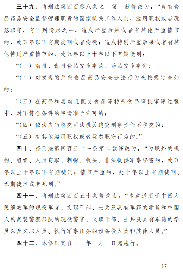 從二次審議稿內容來看, 關于食品藥品監(jiān)管瀆職罪的規(guī)定與今年7月份的發(fā)布的草案相比 ,有了重大變化,取消了“未及時發(fā)現監(jiān)督管理區(qū)域內重大食品藥品安全隱患的“的規(guī)定。草案內容具體如下: