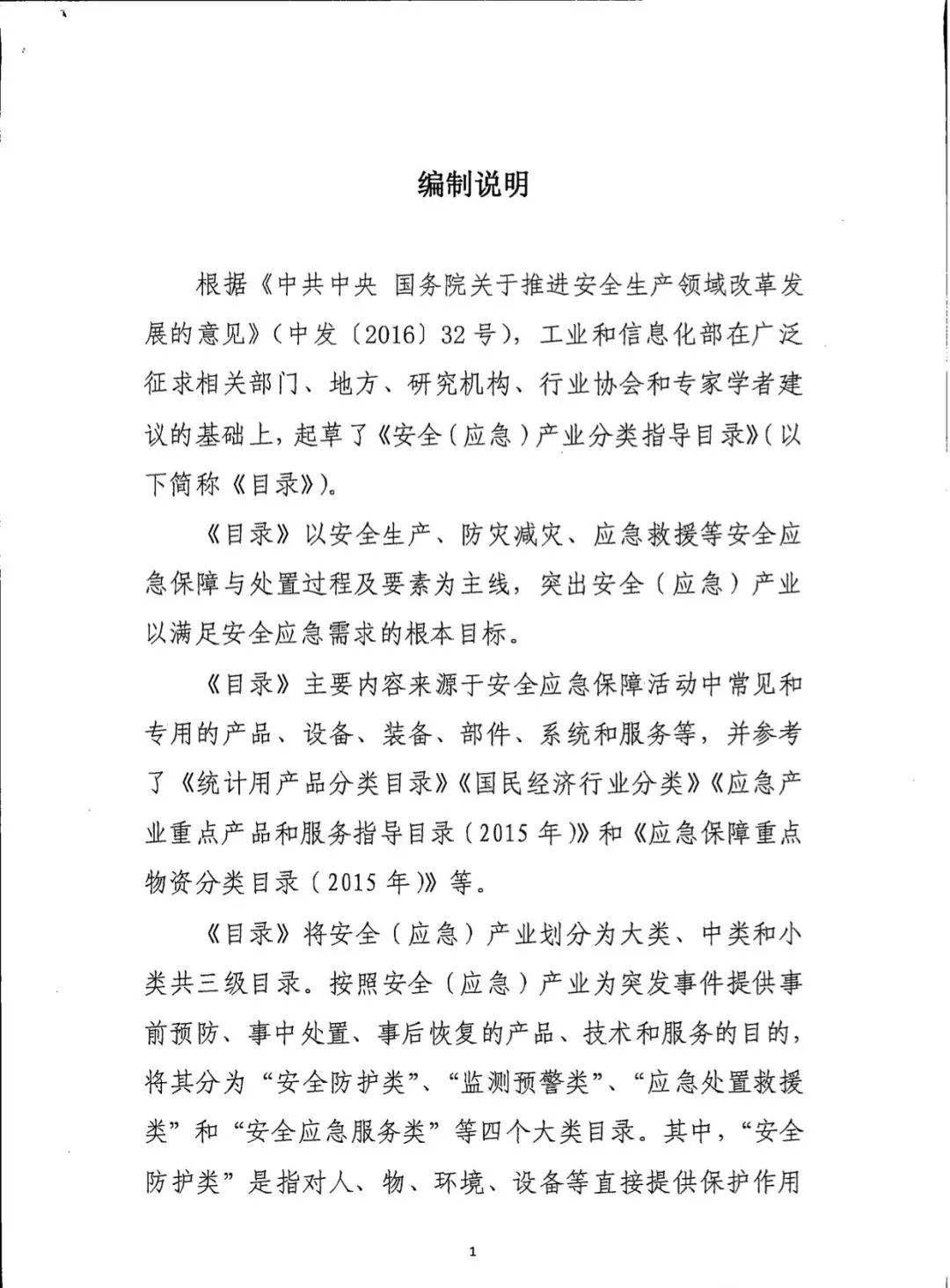 重磅 | 工信部安全生產(chǎn)司關(guān)于征求《安全(應(yīng)急)產(chǎn)業(yè)分類(lèi)指導(dǎo)目錄》意見(jiàn)的函