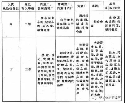 生產(chǎn)、儲(chǔ)存的火災(zāi)危險(xiǎn)性分類(lèi)及建(構(gòu))筑物的最低耐火等級(jí)