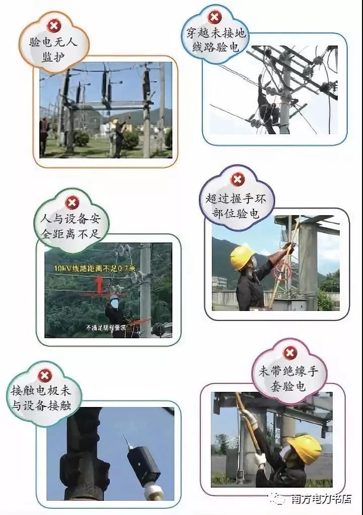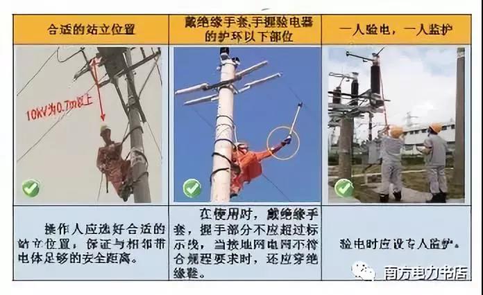 (3)驗電前應先在有電設備上進行檢驗。在已停電設備上驗電前,應先在同一電壓等級的有電設備上試驗,確保驗電器指示正常。