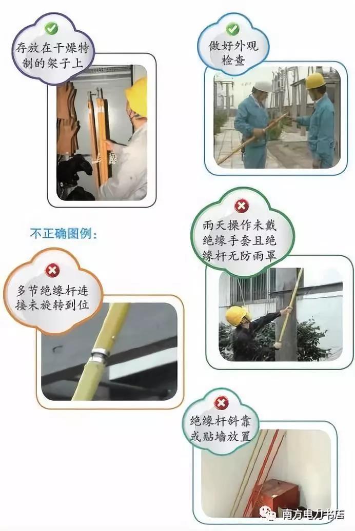 (5)操作結(jié)束后應立即將絕緣操作桿收至保管袋中或存放于專用的木架上或特制的絕緣工器具柜內(nèi),且不得貼墻放置。
