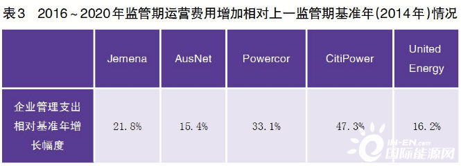 加強輸電設(shè)備防山火管理,也增加了各配電公司的運營費用支出。維多利亞州5家配電公司2016~2020年監(jiān)管期運營費用增加相對上一監(jiān)管期基準(zhǔn)年(2014年)情況見表3。增加原因除了勞動力成本的上漲外,主要就是履行防山火義務(wù)增加的運營費用。