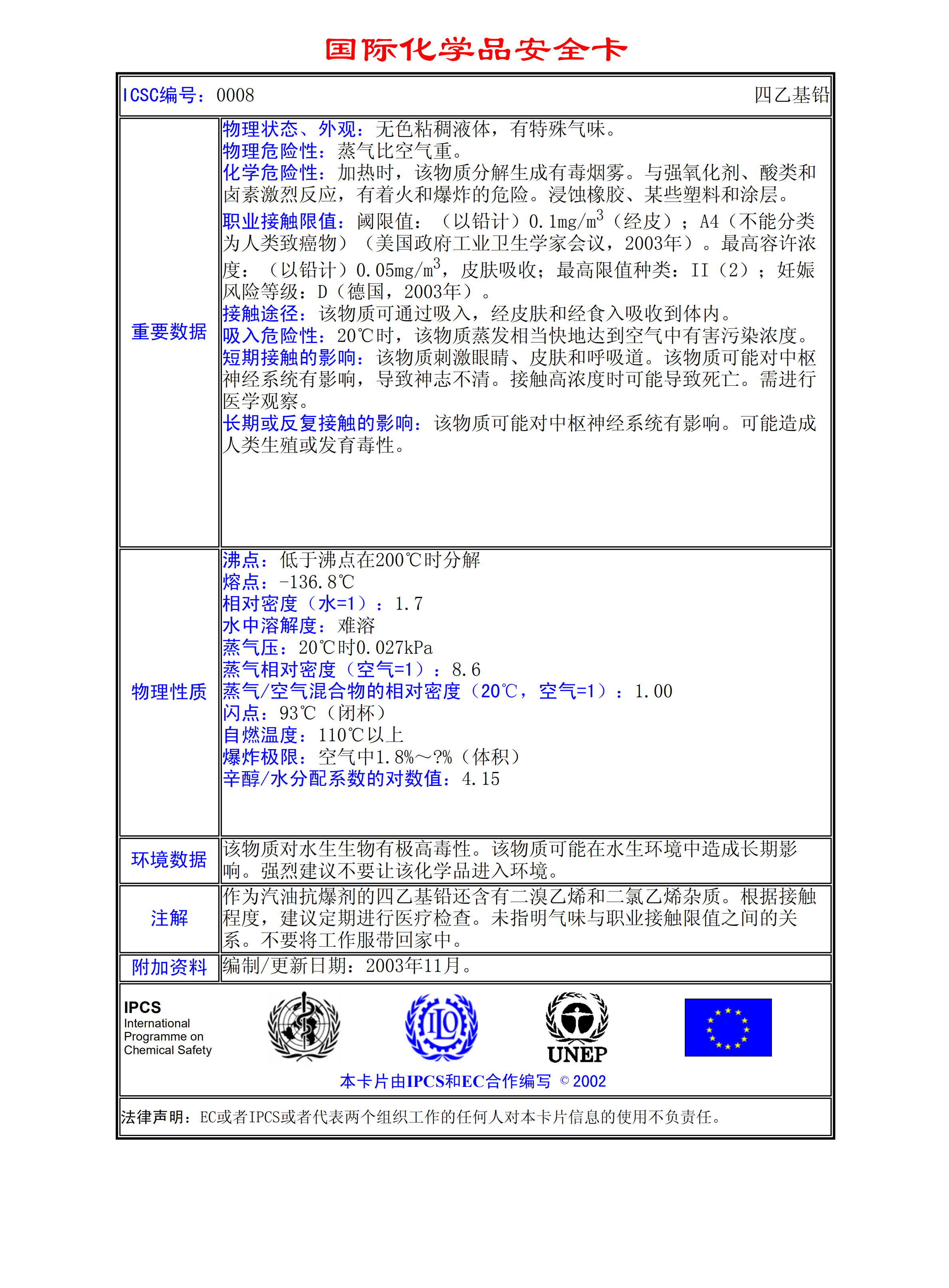 四乙基鉛MSDS