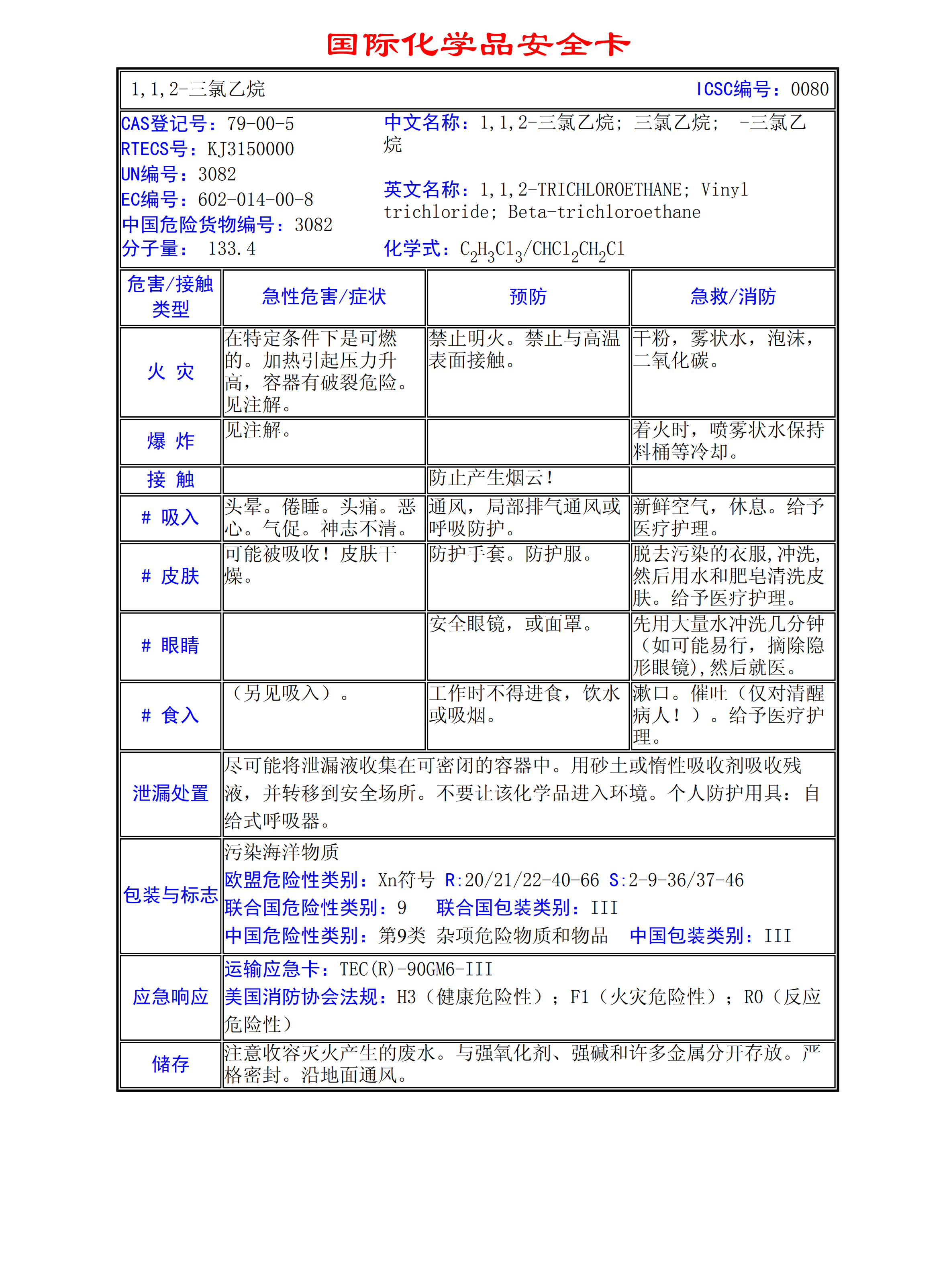 1,1,2-三氯乙烷MSDS