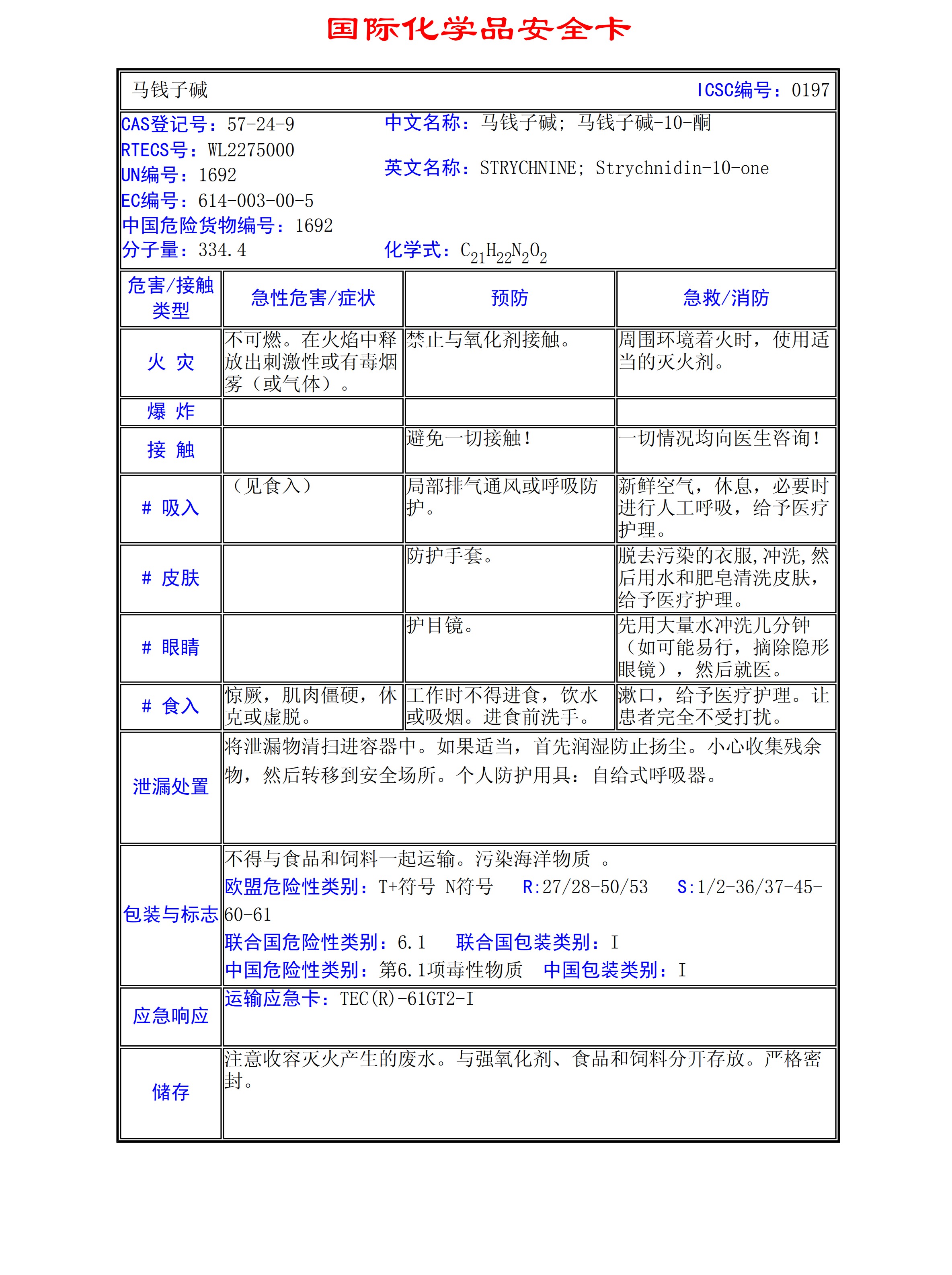 馬餞子堿MSDS