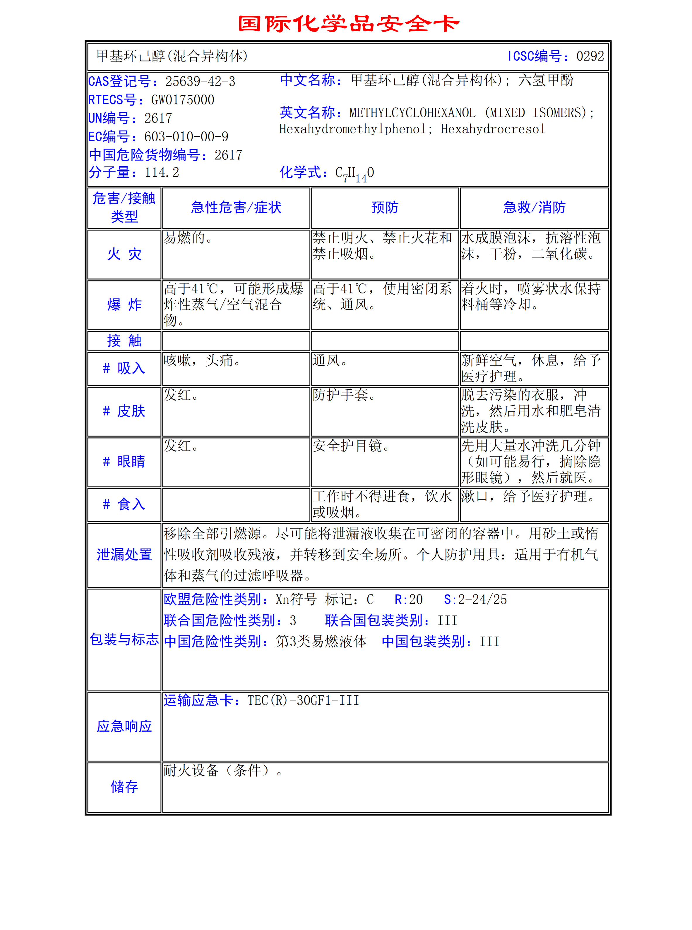 甲基環(huán)己醇(混合異構(gòu)體)MSDS