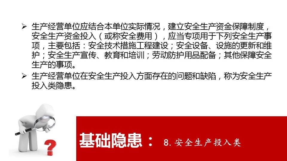 安全 生產(chǎn) 投入 | 決策機(jī)構(gòu)、主要負(fù)責(zé)人或者個(gè)人經(jīng)營(yíng)的投資人不依照本法規(guī)定保證安全生產(chǎn)所必需的資金投入,致使生產(chǎn)經(jīng)營(yíng)單位不具備安全生產(chǎn)條件的 | 責(zé)令限期改正,提供必需的資金 | 責(zé)令生產(chǎn)經(jīng)營(yíng)單位停產(chǎn)停業(yè)整頓 |