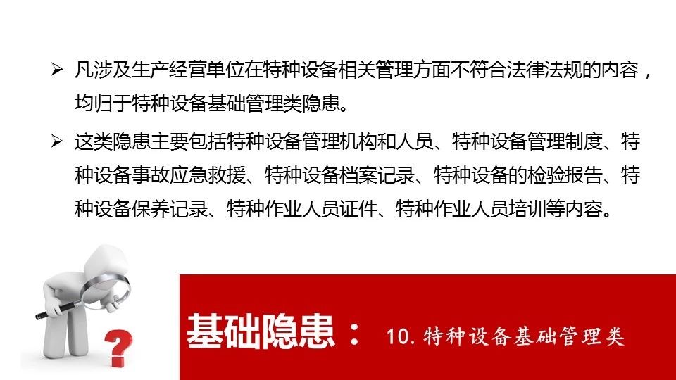 18 | 危險(xiǎn)物品的容器、運(yùn)輸工具,以及涉及人身安全、危險(xiǎn)性較大的海洋石油開采特種設(shè)備和礦山井下特種設(shè)備未經(jīng)具有專業(yè)資質(zhì)的機(jī)構(gòu)檢測(cè)、檢驗(yàn)合格,取得安全使用證或者安全標(biāo)志,投入使用的 |