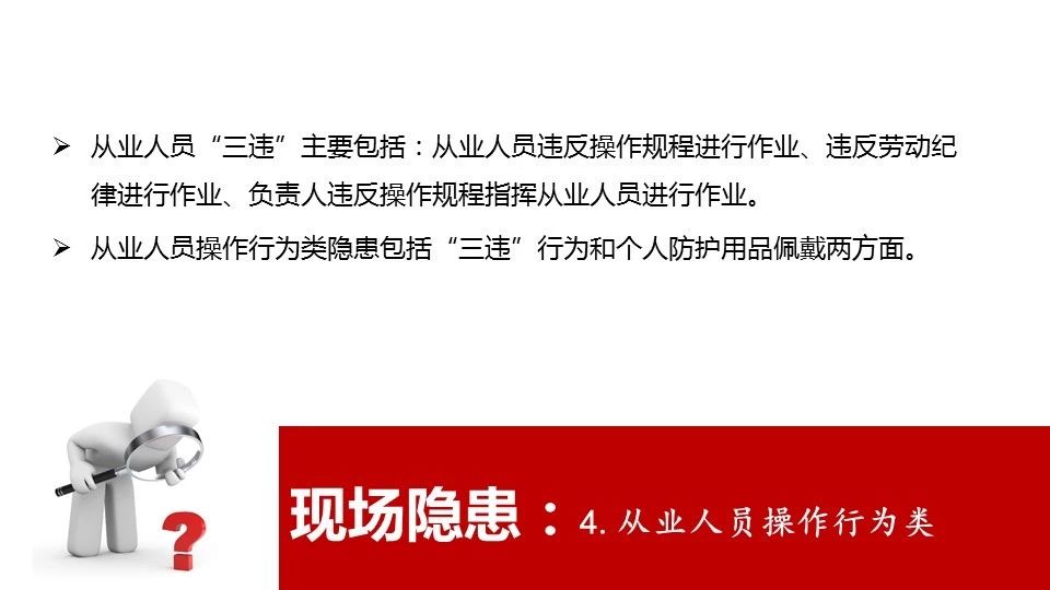 23 | 進(jìn)行爆破、吊裝以及國(guó)務(wù)院安全生產(chǎn)監(jiān)督管理部門會(huì)同國(guó)務(wù)院有關(guān)部門規(guī)定的其他危險(xiǎn)作業(yè),未安排專門人員進(jìn)行現(xiàn)場(chǎng)安全管理的 |