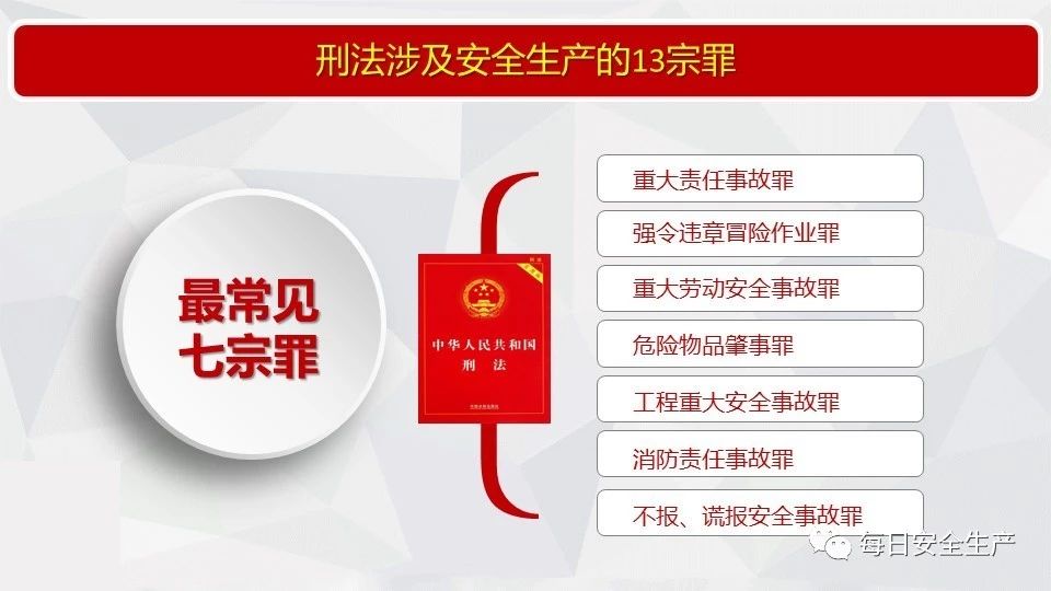 13 | 礦山、金屬冶煉建設(shè)項(xiàng)目或者用于生產(chǎn)、儲(chǔ)存危險(xiǎn)物品的建設(shè)項(xiàng)目竣工投入生產(chǎn)或者使用前,安全設(shè)施未經(jīng)驗(yàn)收合格的 |
