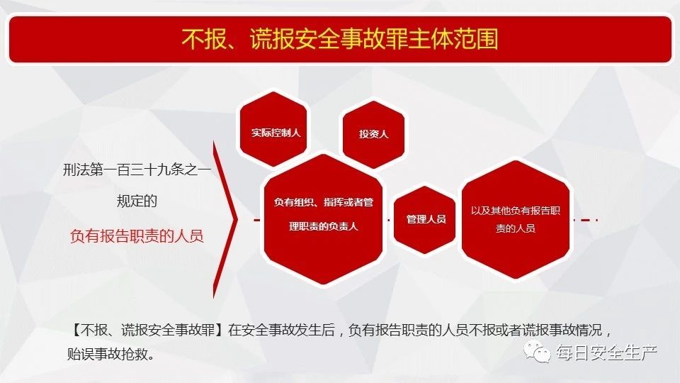 36 | 生產(chǎn)經(jīng)營(yíng)單位的主要負(fù)責(zé)人對(duì)生產(chǎn)安全事故隱瞞不報(bào)、謊報(bào)或者遲報(bào)的,依照前款規(guī)定處罰。 |