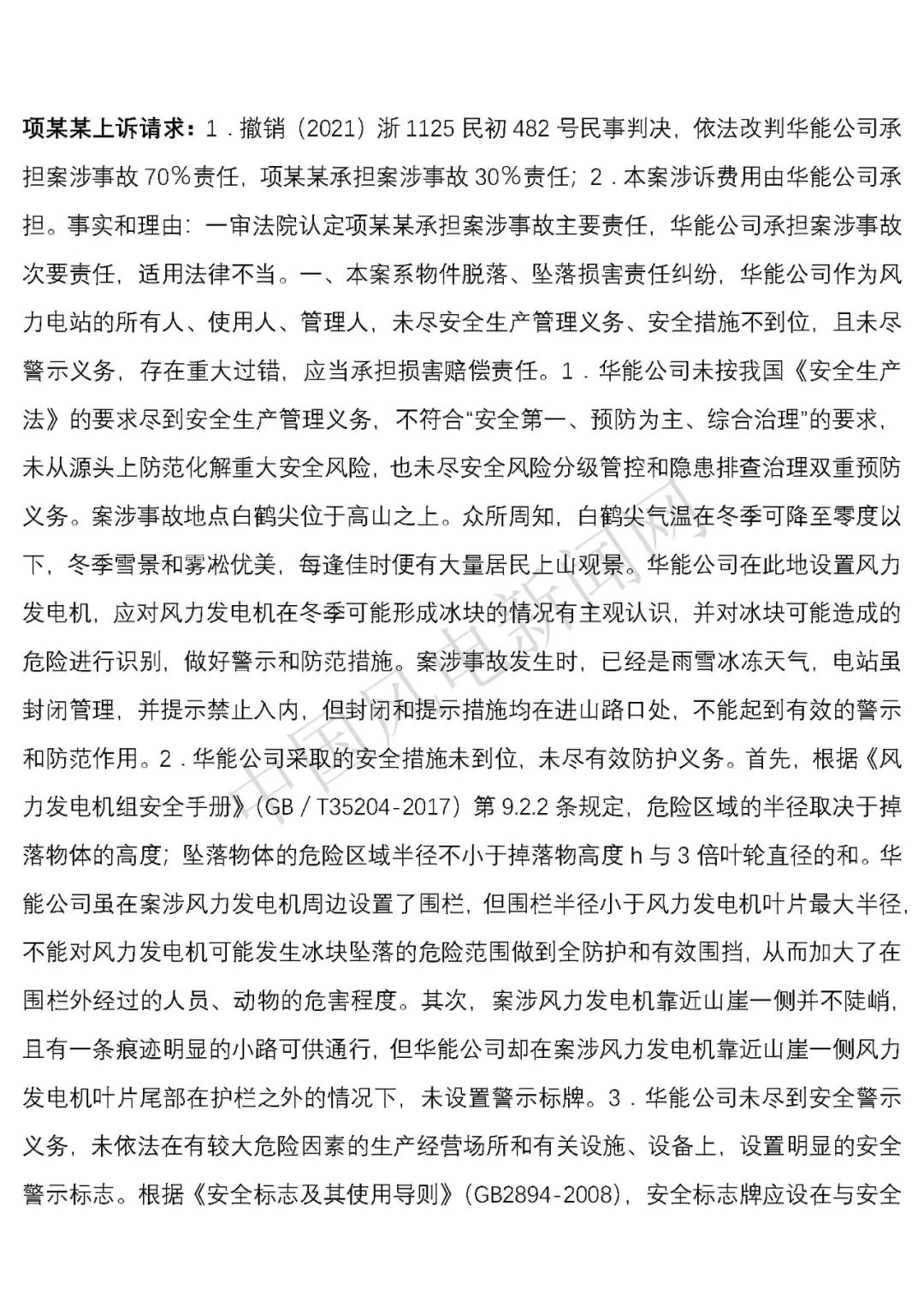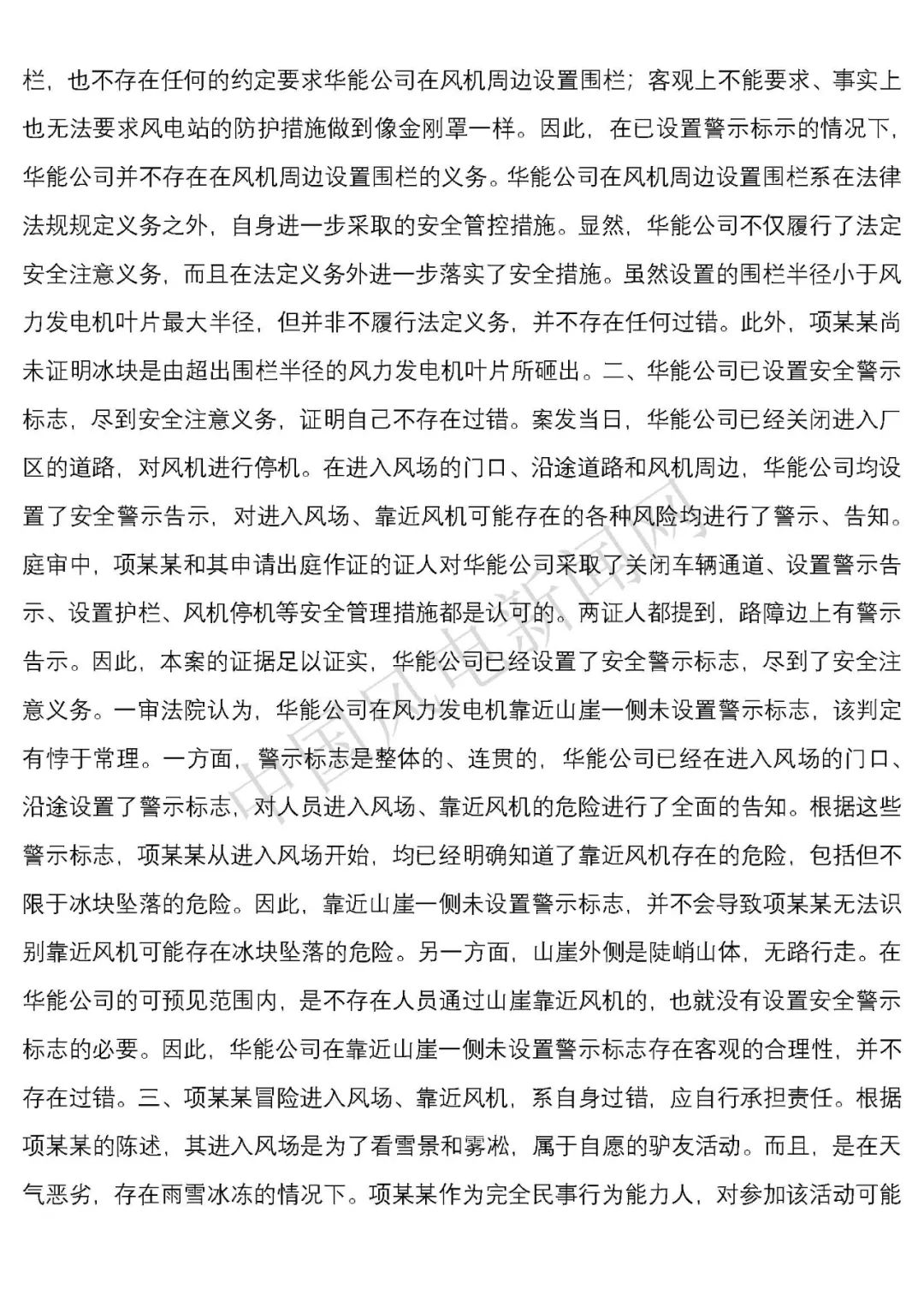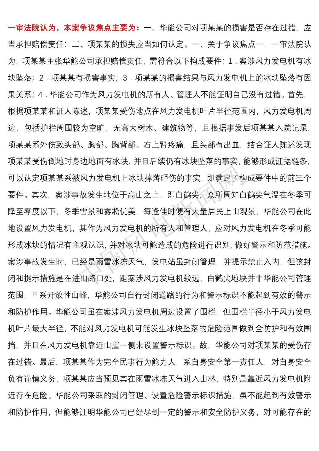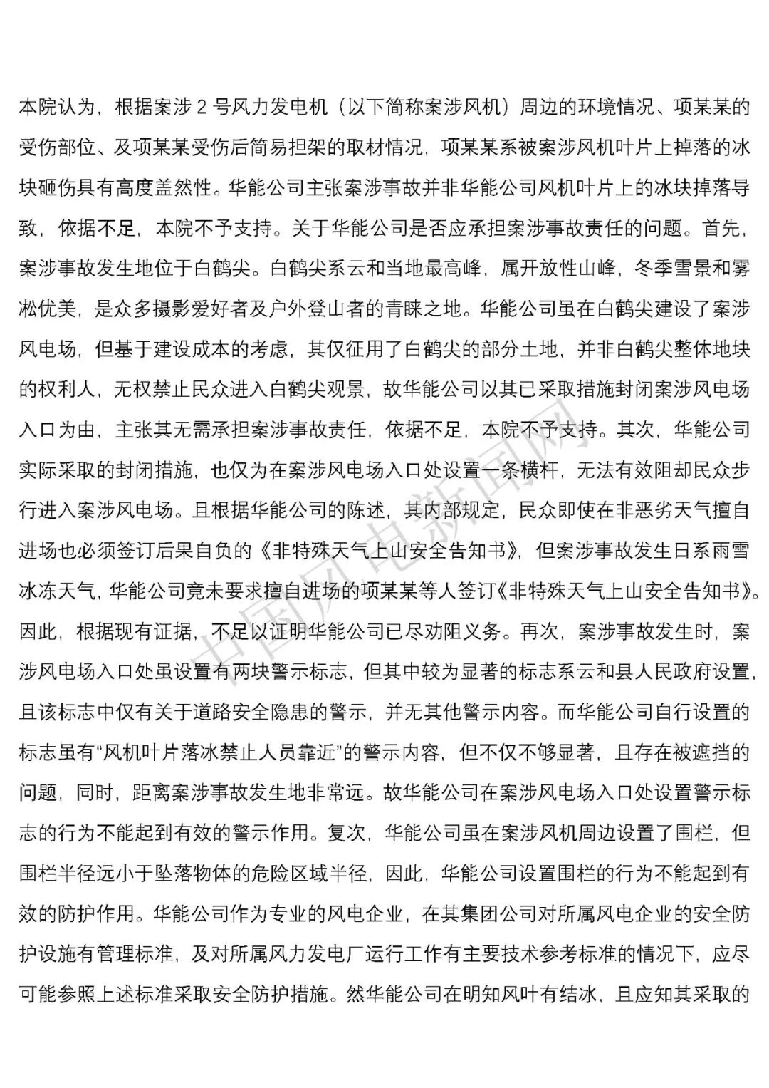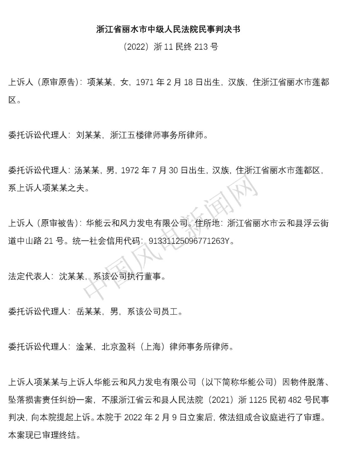 華能浙江某風(fēng)電場(chǎng)葉片結(jié)冰冰塊掉落砸傷路人案宣判