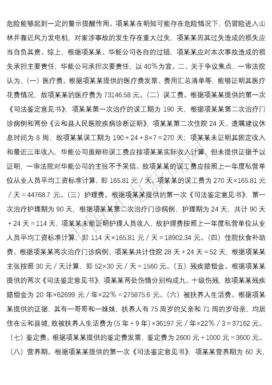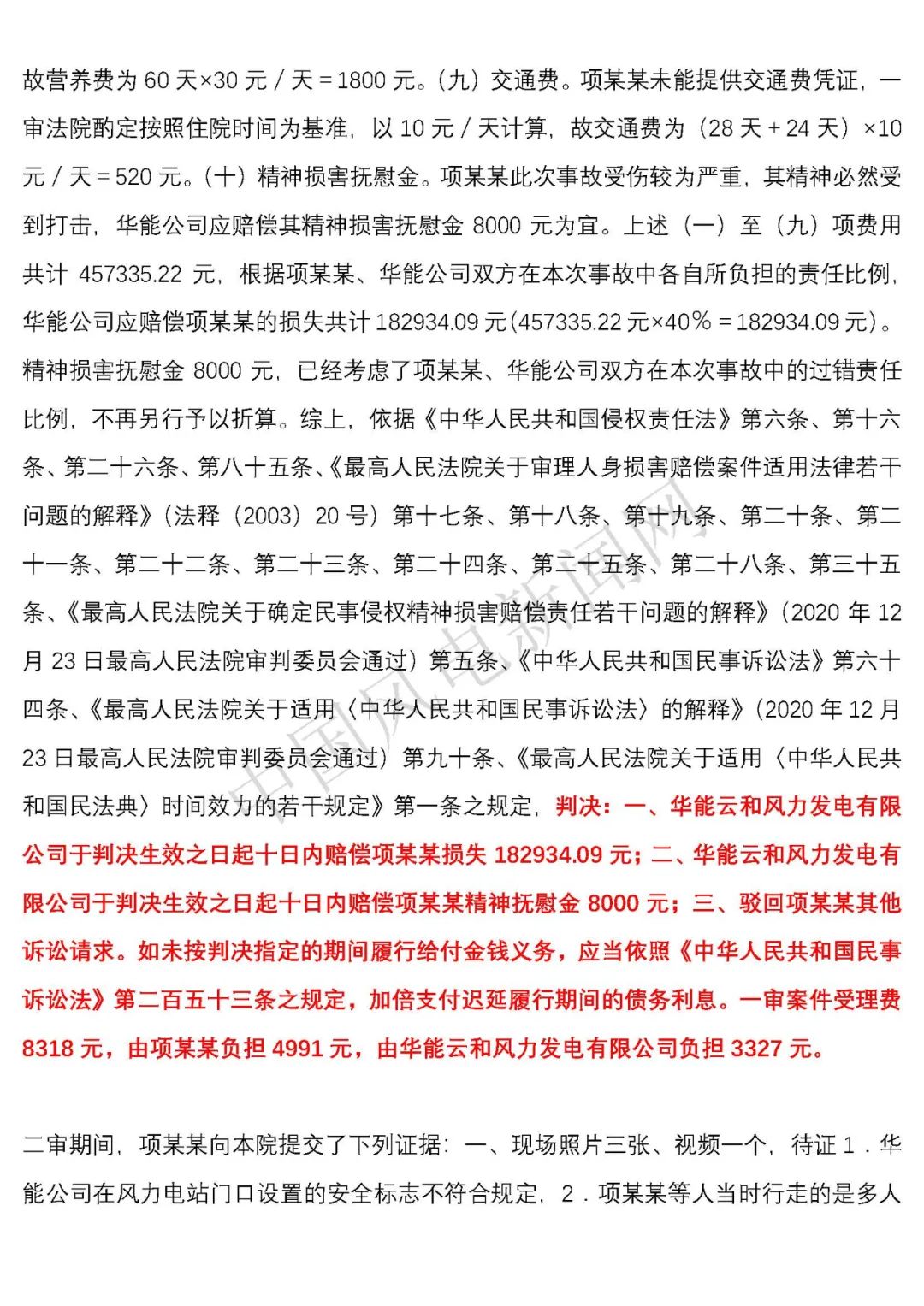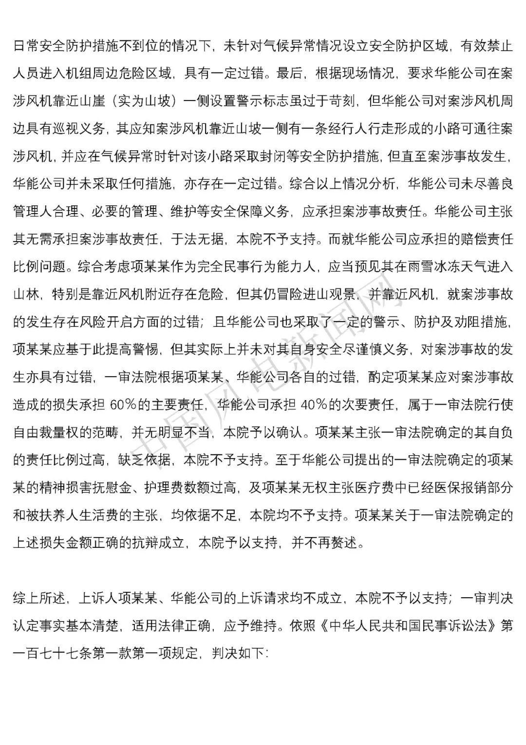 法院判決:一、華能云和風(fēng)力發(fā)電有限公司于判決生效之日起十日內(nèi)賠償項(xiàng)建英損失182934.09元;二、華能云和風(fēng)力發(fā)電有限公司于判決生效之日起十日內(nèi)賠償項(xiàng)建英精神撫慰金8000元;三、駁回項(xiàng)建英其他訴訟請(qǐng)求。
