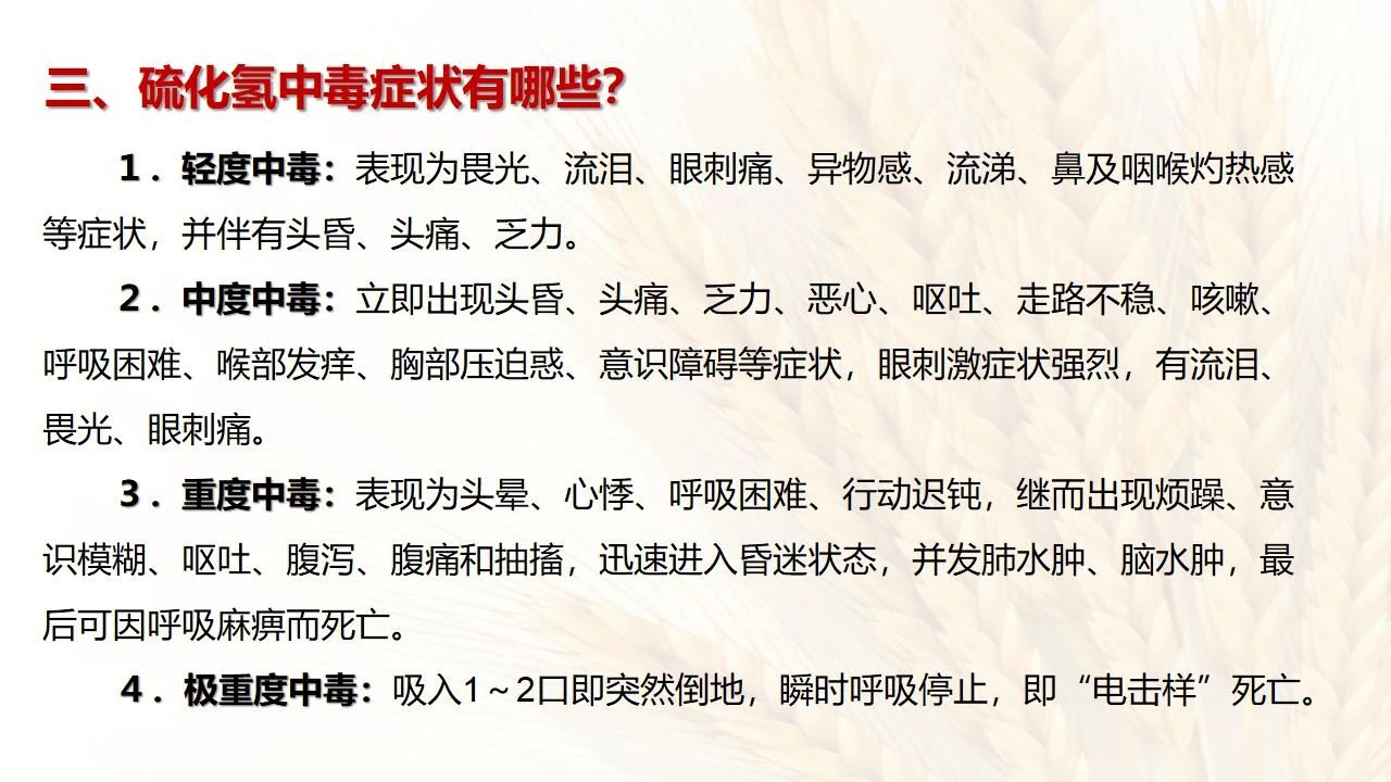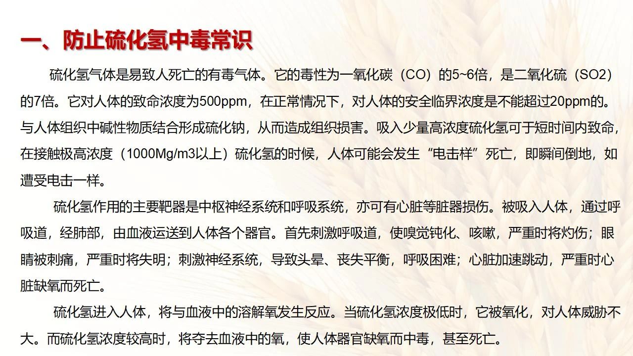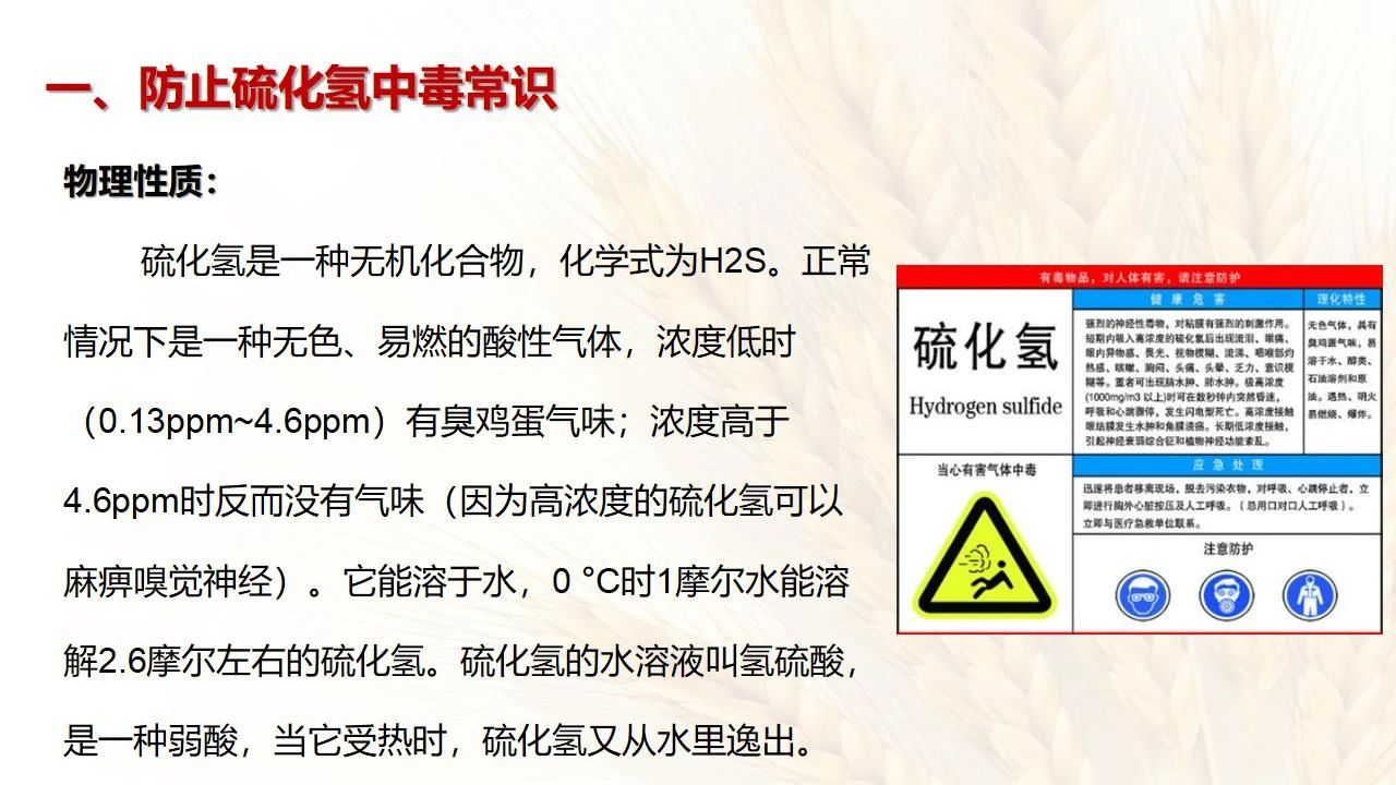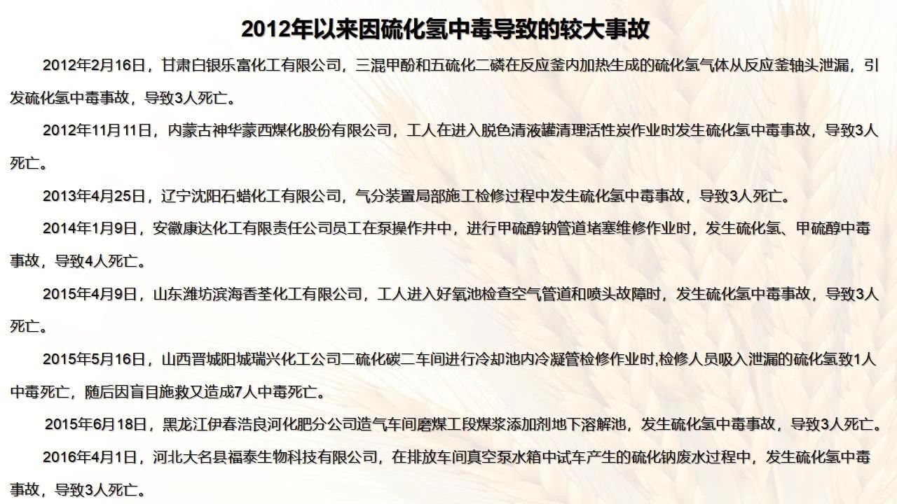 硫化氫中毒多由于含有硫化氫介質(zhì)的設(shè)備損壞,輸送含有硫化氫介質(zhì)的管道和閥門泄漏,違反操作規(guī)程、生產(chǎn)故障以及各種原因引起的硫化氫大量生成或逸出,含硫化氫的廢氣、廢液排放不當(dāng),無(wú)適當(dāng)個(gè)人防護(hù)情況下的密閉空間作業(yè),硫化氫中毒事故時(shí)盲目施救等所致。