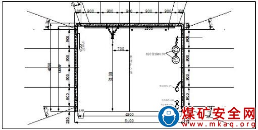 (2)幫部支護(hù):采用錨網(wǎng)索支護(hù),每排采用 4 棵 MSGLW600-22×2500mm 無(wú)縱肋螺紋鋼式樹脂錨桿和 1 棵 SKZ22-1/1770-3800mm 中空注漿錨索,排距 1000mm。在每幫上下部各施工 1 棵 SKZ22-1/1770-3800/8300mm 中空注漿錨索,排距52000mm。(見(jiàn)圖 5)