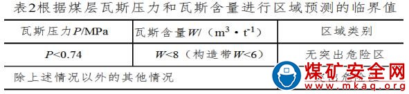 (1)區(qū)域突出危險(xiǎn)性預(yù)測采用直接測定法測定煤層瓦斯含量 W 和煤層瓦斯壓力 P,由鉆機(jī)隊(duì)施工 4 個(gè)預(yù)測孔,防突工負(fù)責(zé)現(xiàn)場監(jiān)督、采集數(shù)據(jù),出具突出危險(xiǎn)性預(yù)測報(bào)告單,經(jīng)防突隊(duì)、科、礦有關(guān)領(lǐng)導(dǎo)審核簽字確認(rèn)后執(zhí)行區(qū)域防突措施。