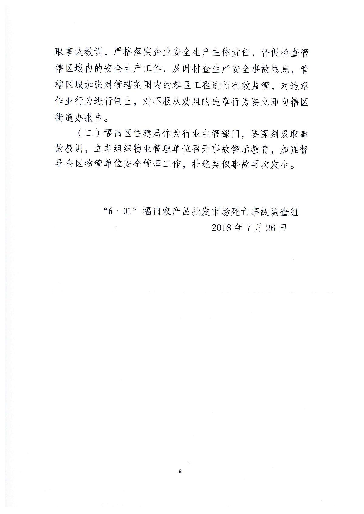 “6.01”福田農(nóng)產(chǎn)品批發(fā)市場死亡事故調(diào)查