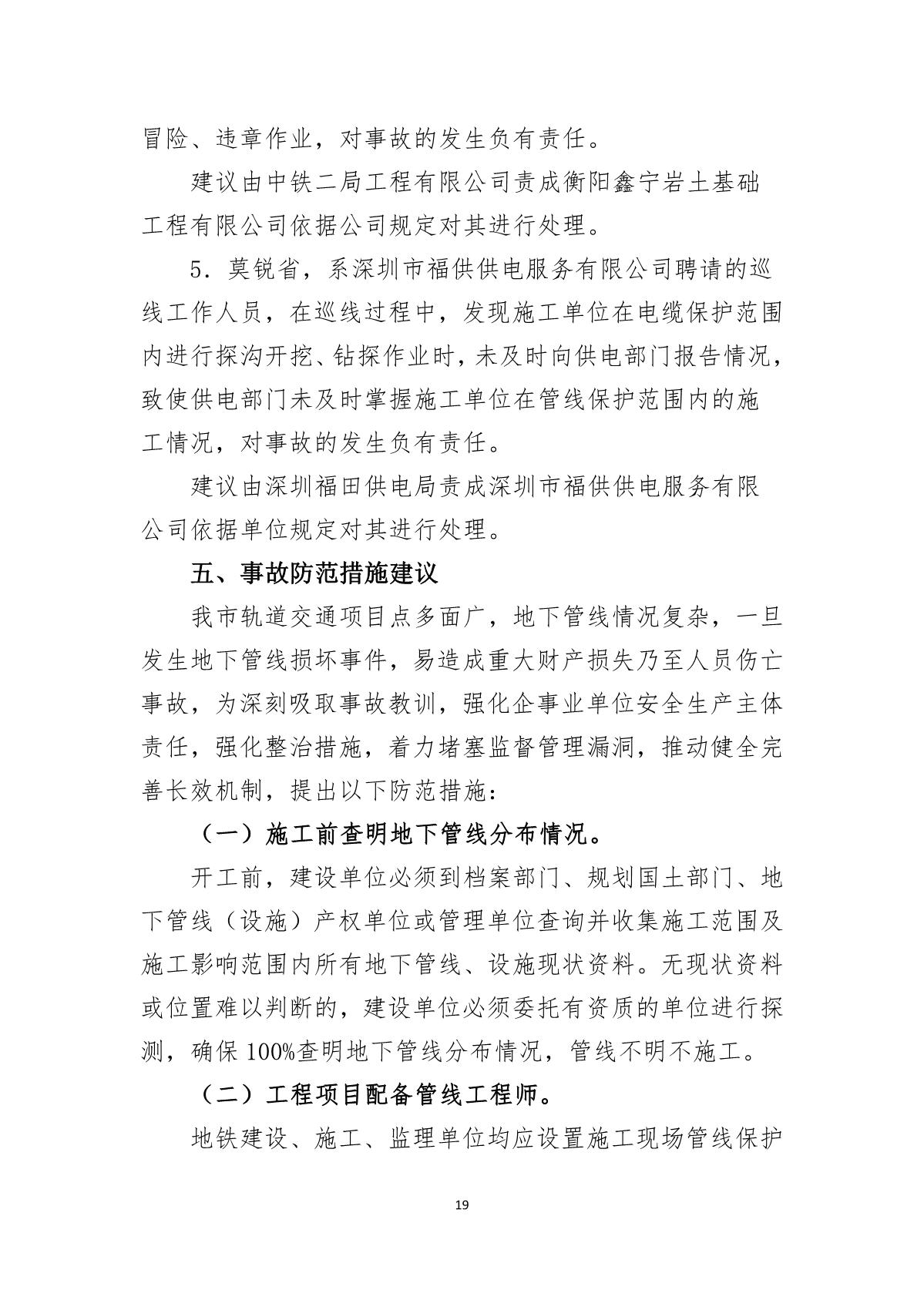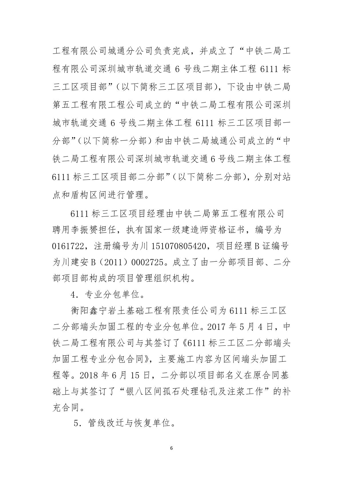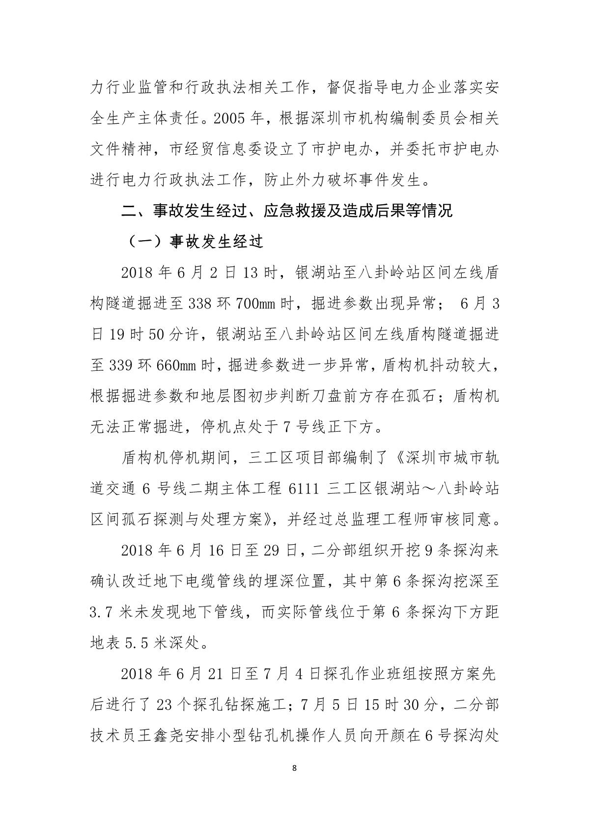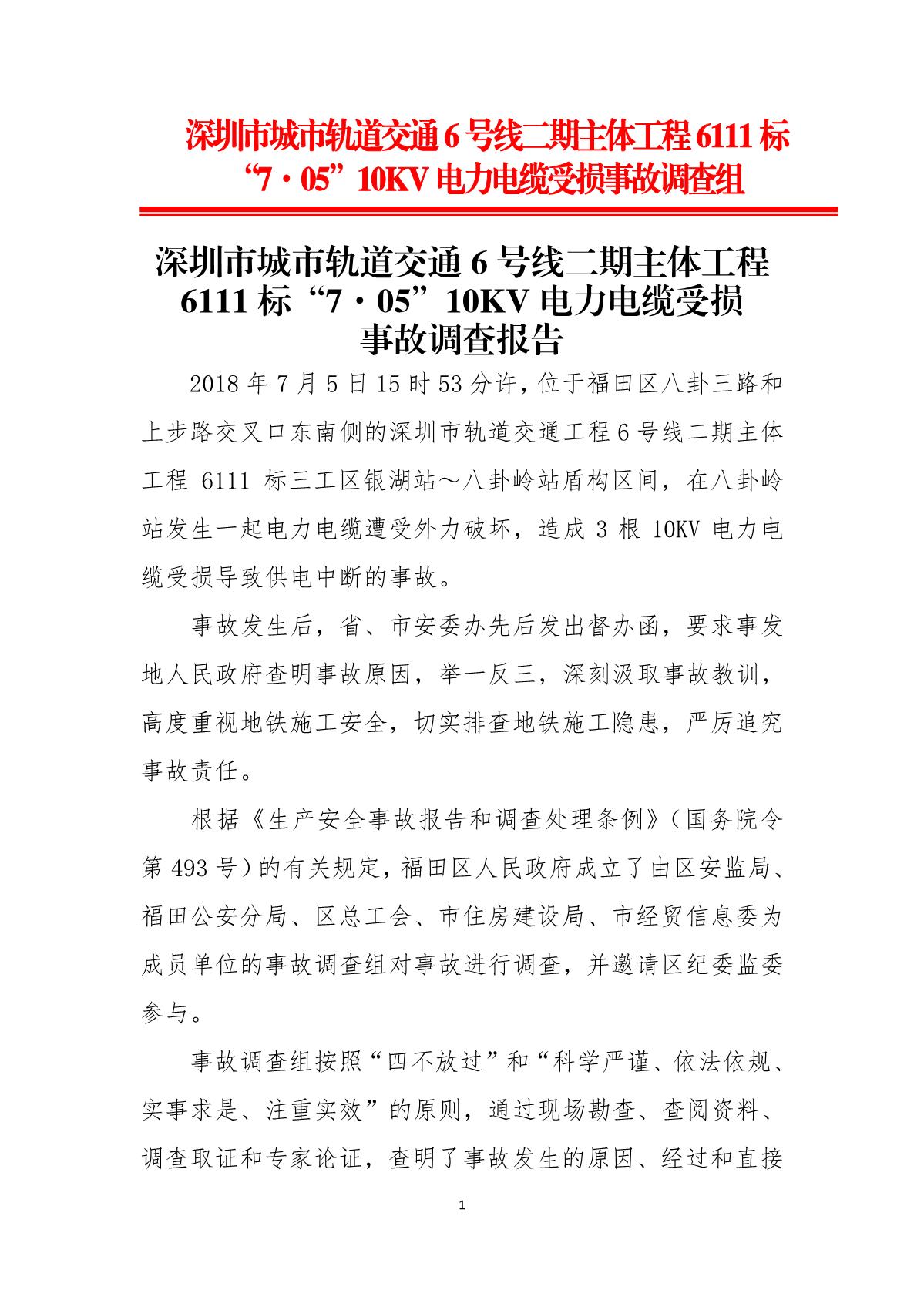 福田區(qū)人民政府關(guān)于深圳市城市軌道交通6號線二期主體工程6111標(biāo)“7.05”10kv電力電纜受損事故調(diào)查報告