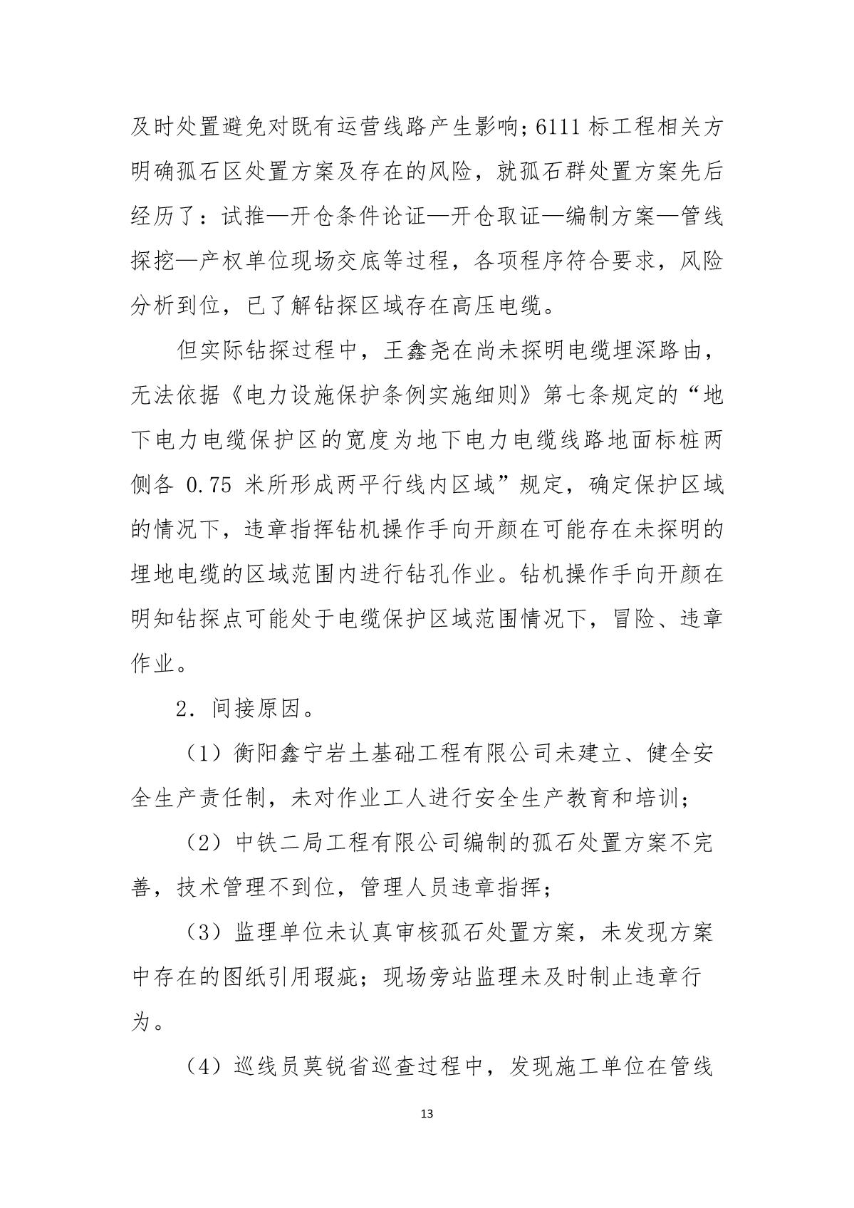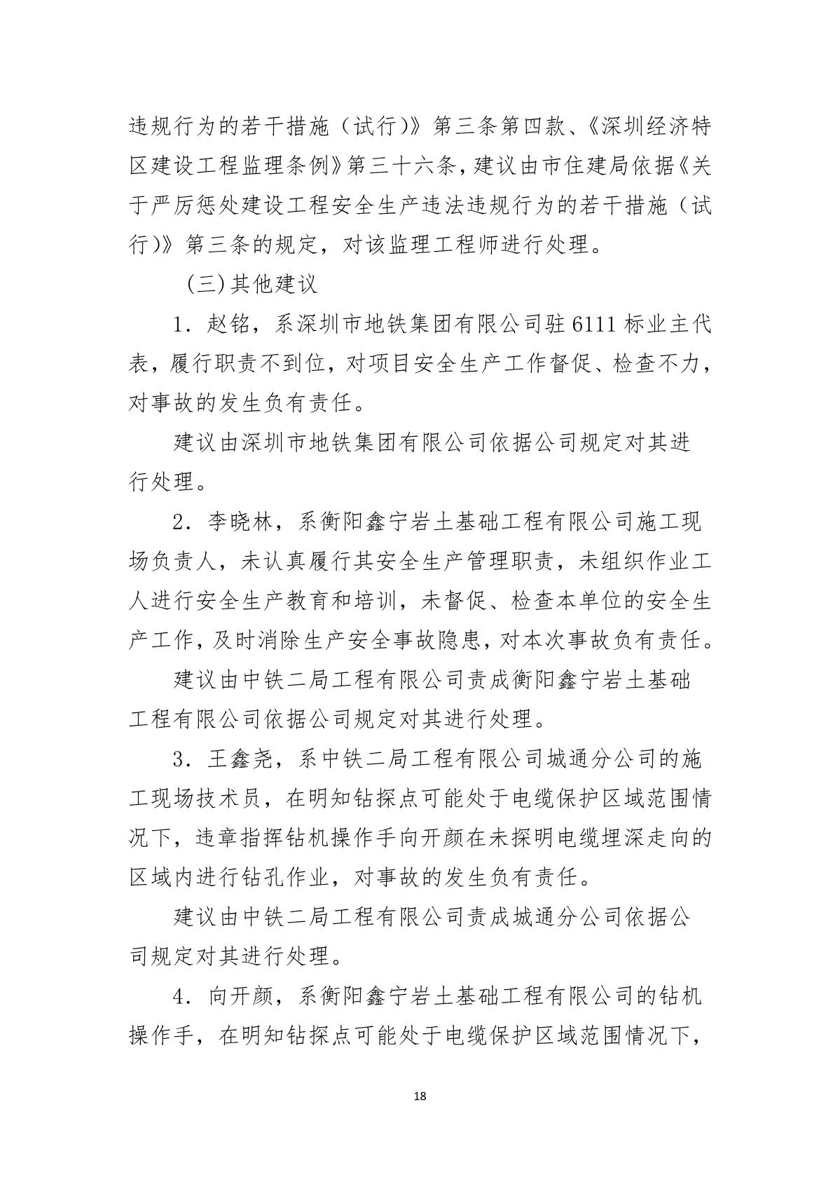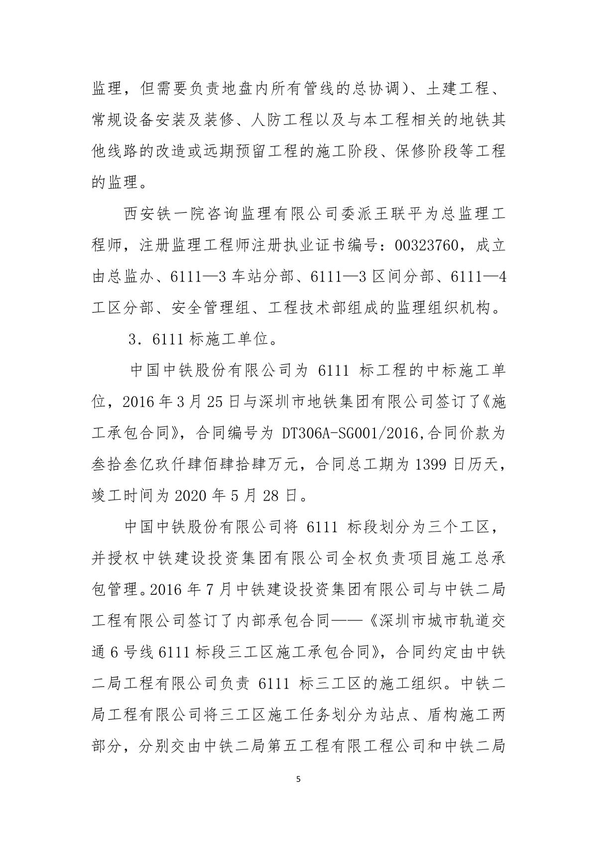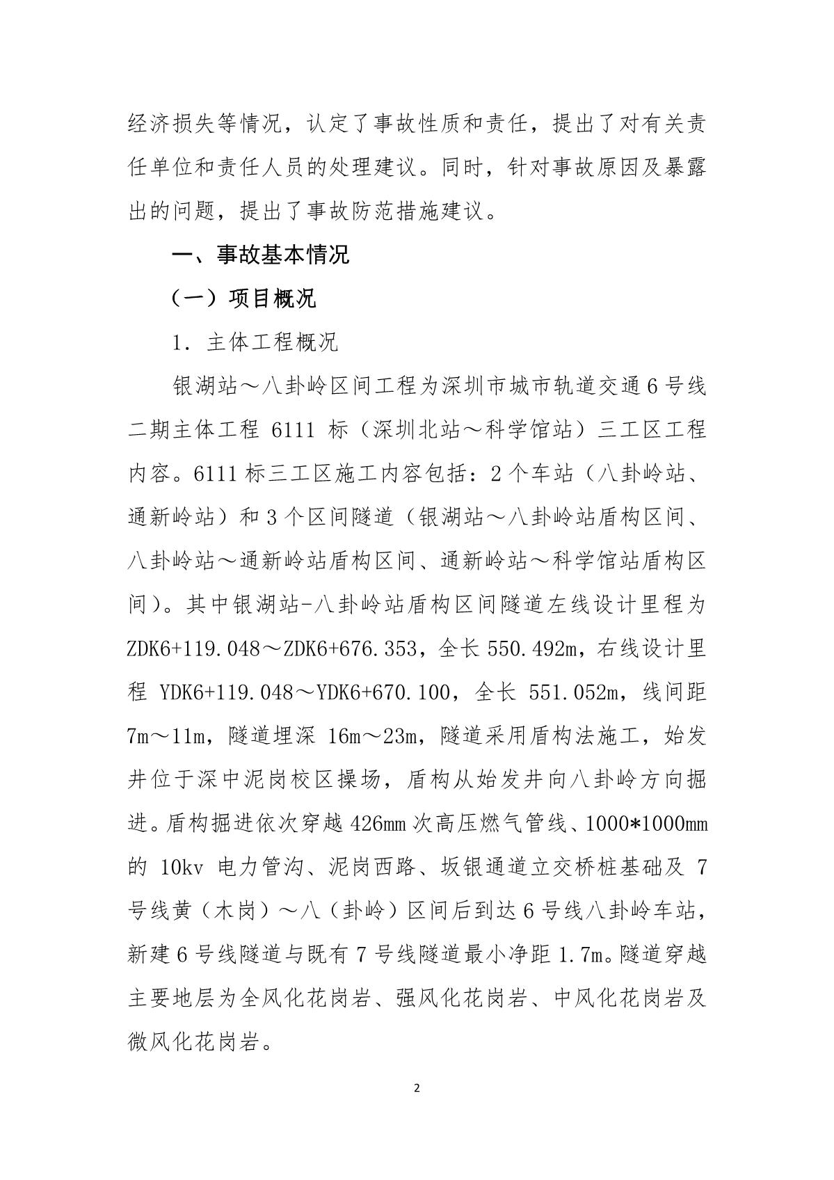 福田區(qū)人民政府關(guān)于深圳市城市軌道交通6號線二期主體工程6111標(biāo)“7.05”10kv電力電纜受損事故調(diào)查報告
