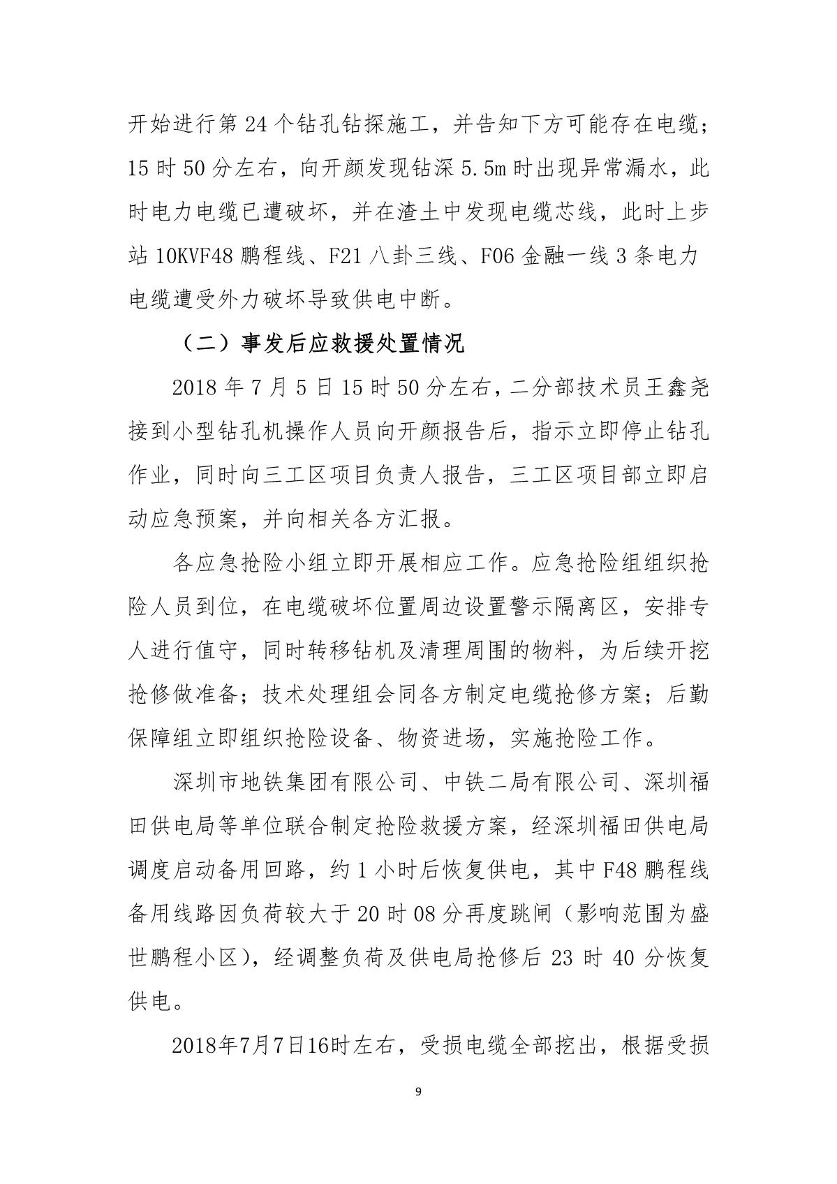深圳市崗廈北綜合交通樞紐工程“7.07”10kv電力電纜受損事故調(diào)查報告