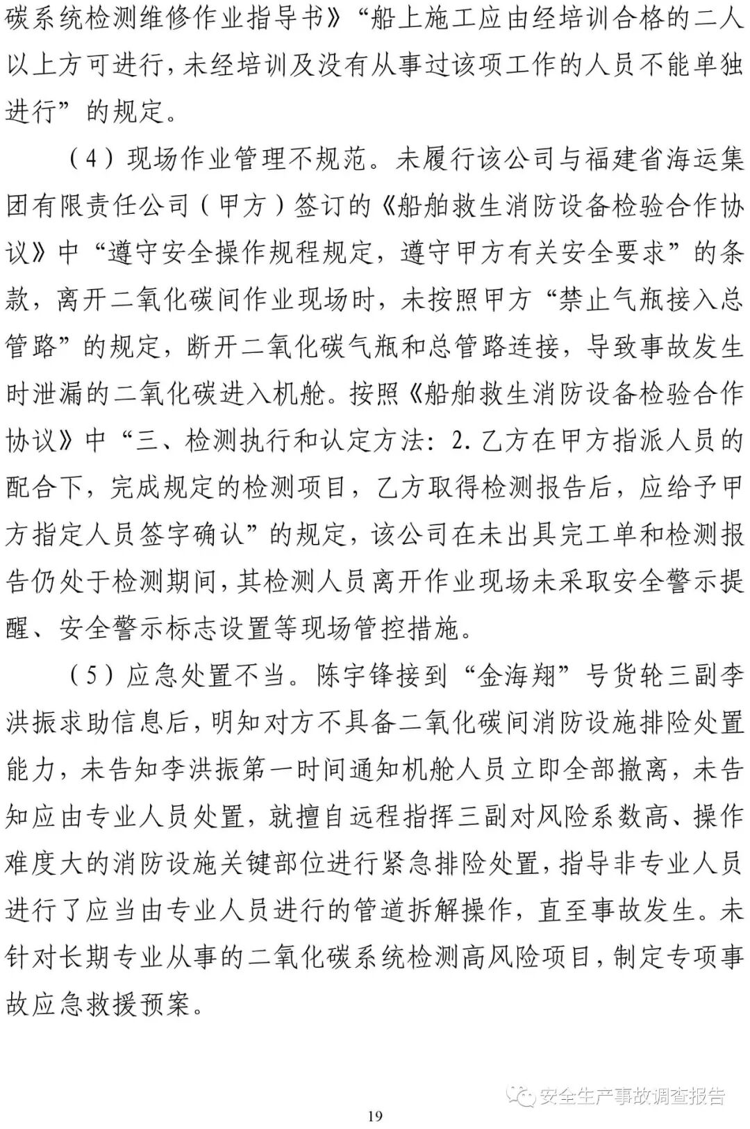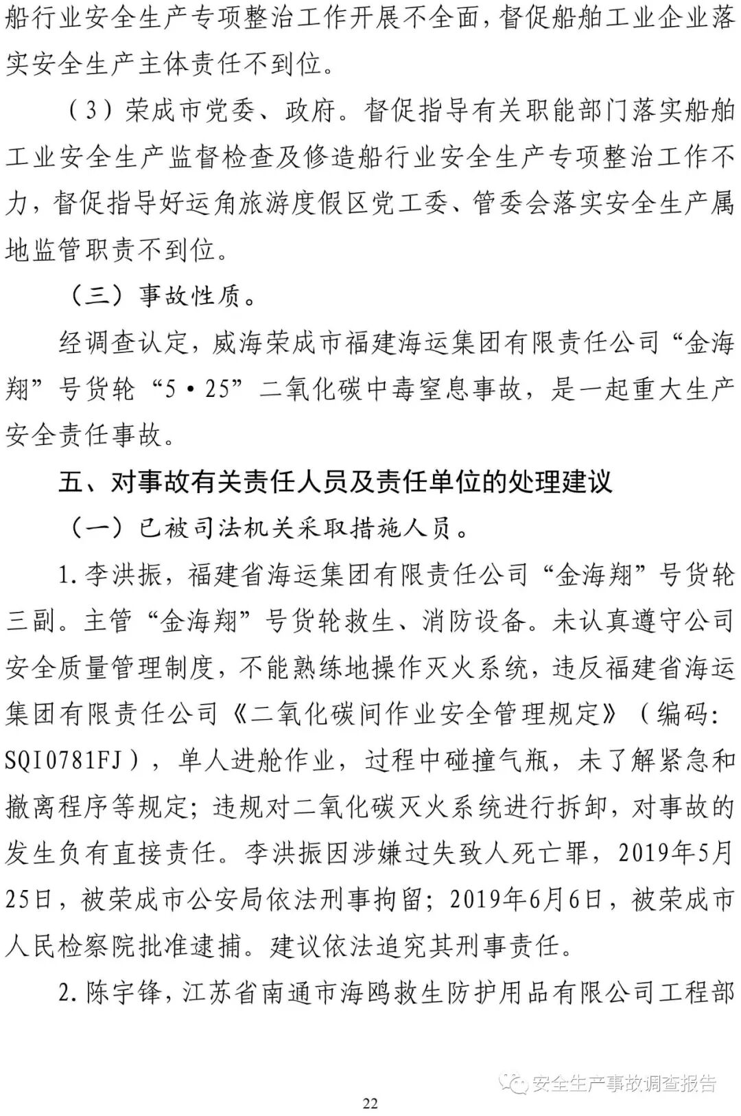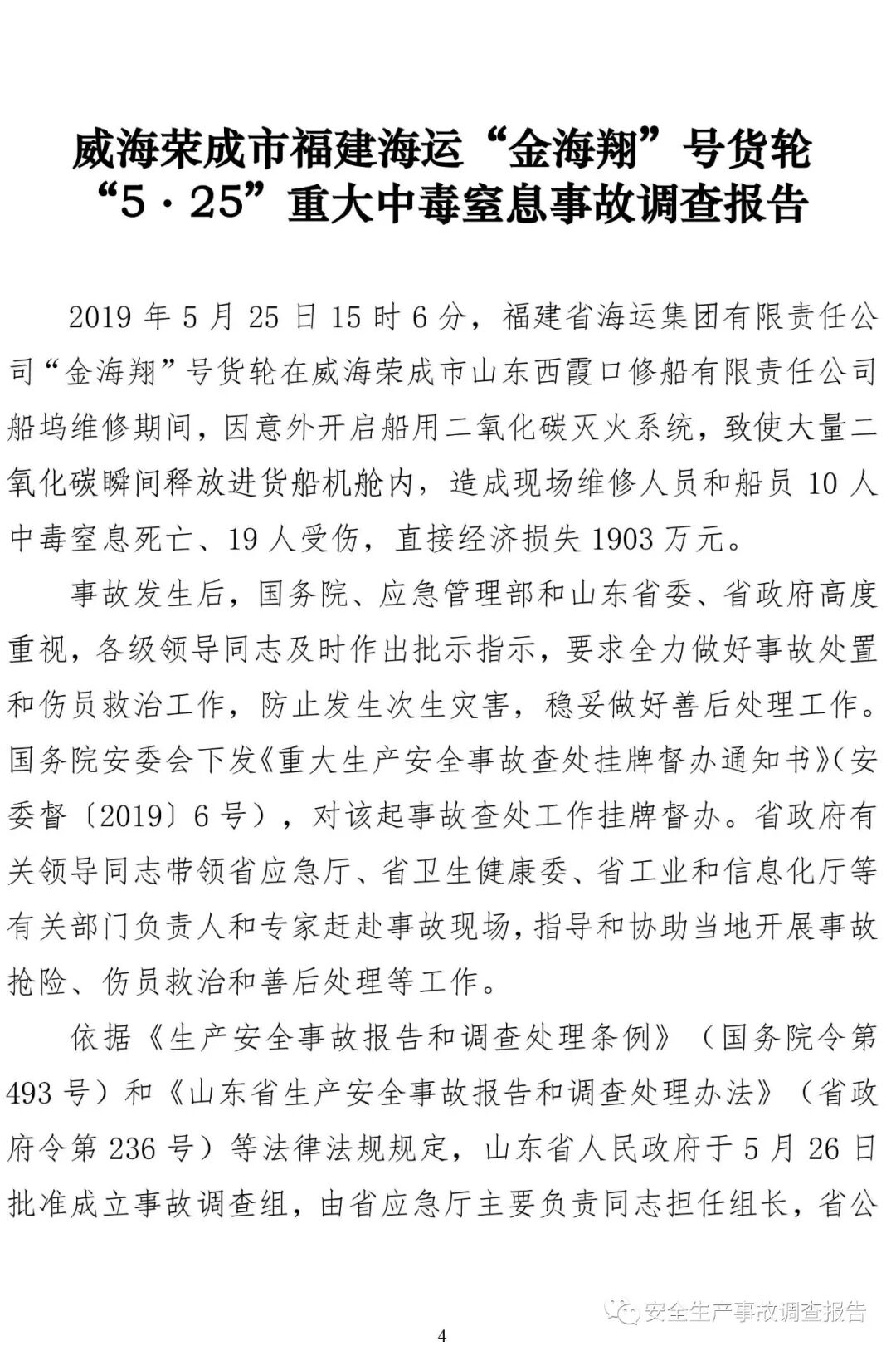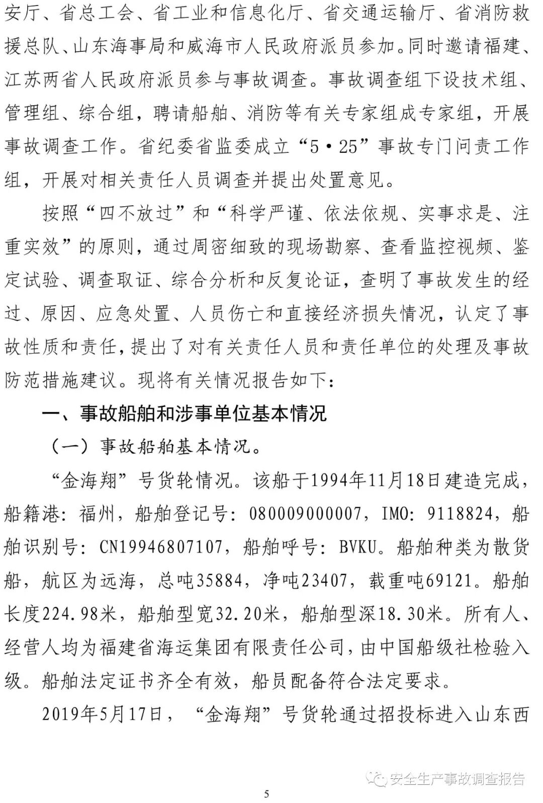 山東省威海榮成市福建海運“金海翔”號貨輪“5·25”重大中毒窒息事故調(diào)查報告