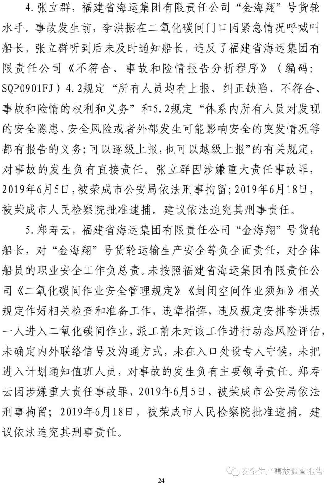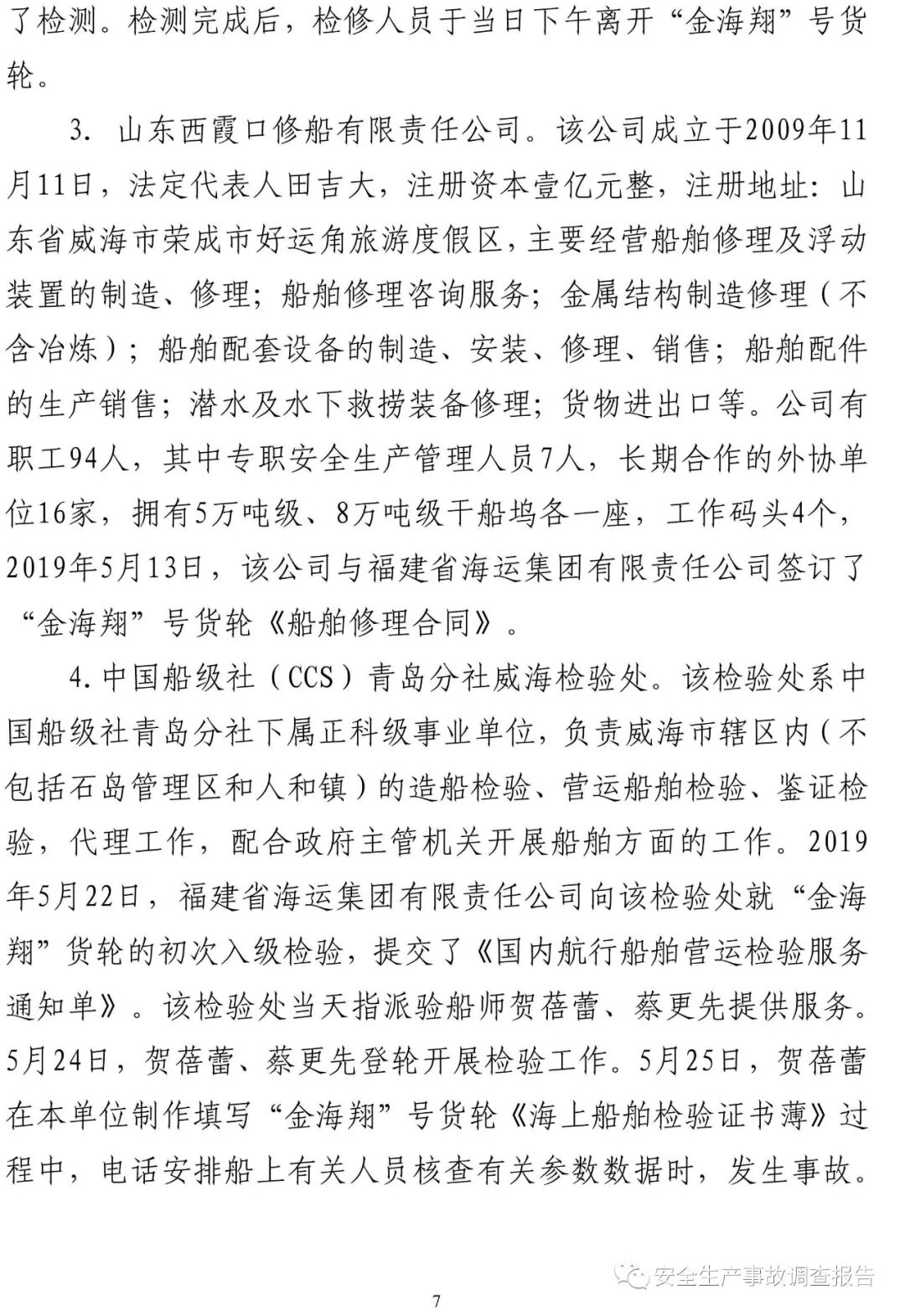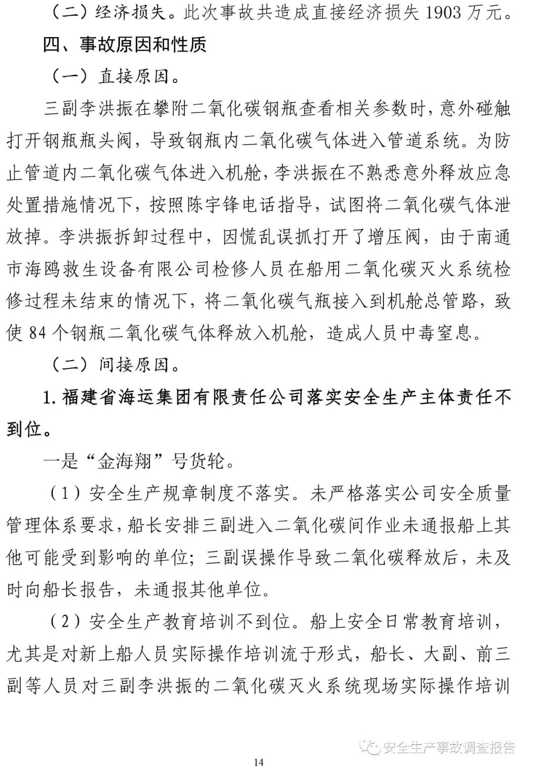 山東省威海榮成市福建海運“金海翔”號貨輪“5·25”重大中毒窒息事故調(diào)查報告