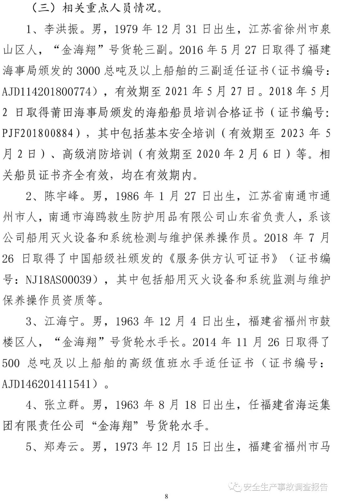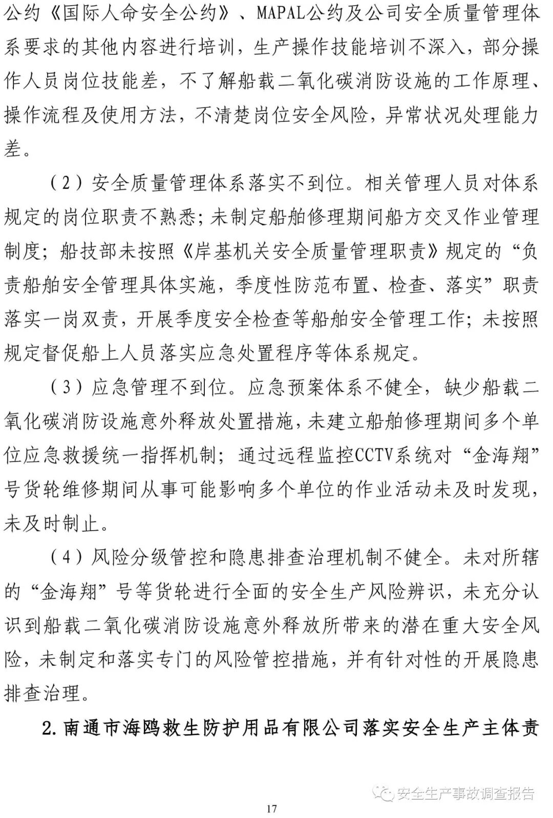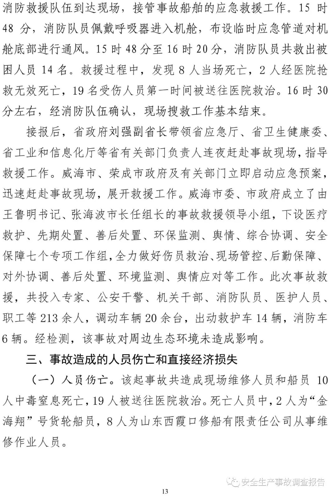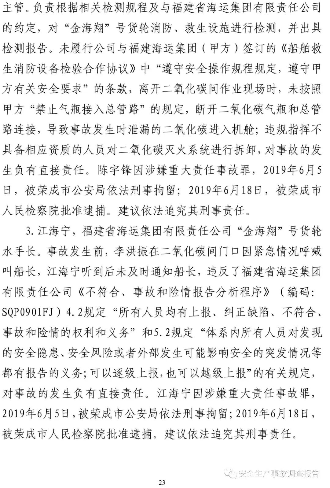 山東省威海榮成市福建海運“金海翔”號貨輪“5·25”重大中毒窒息事故調(diào)查報告