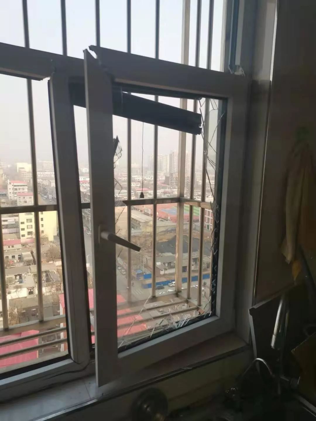 這是贊皇縣翰林官邸小區(qū)11號樓前監(jiān)控視頻拍攝的畫面。從監(jiān)控上看,樓上住戶玻璃破損有大量碎玻璃掉落到樓下。記者了解到這些碎玻璃是從這棟樓21層一戶掉落下來的。之后,記者來到這家住戶屋內(nèi)。