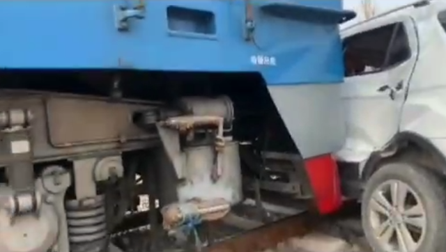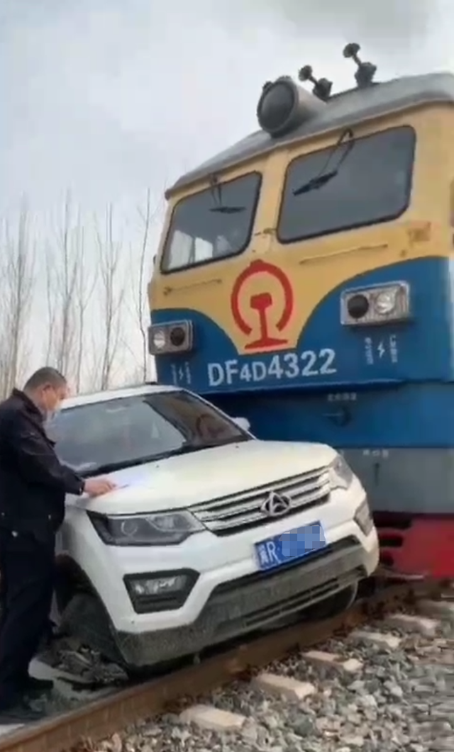 據(jù)網(wǎng)傳視頻顯示,一輛車牌為“冀R”開頭的白色SUV,與一列藍(lán)黃車頭的貨運(yùn)火車相撞后,橫停在鐵路中間,白色汽車駕駛座后座的車門已凹陷變形,周圍有不少圍觀群眾。 據(jù)當(dāng)?shù)毓ぷ魅藛T證實(shí),的確有這么一件事,具體事故原因還在進(jìn)一步調(diào)查中,后續(xù)會發(fā)布官方通報。據(jù)悉,并未有人員受傷。