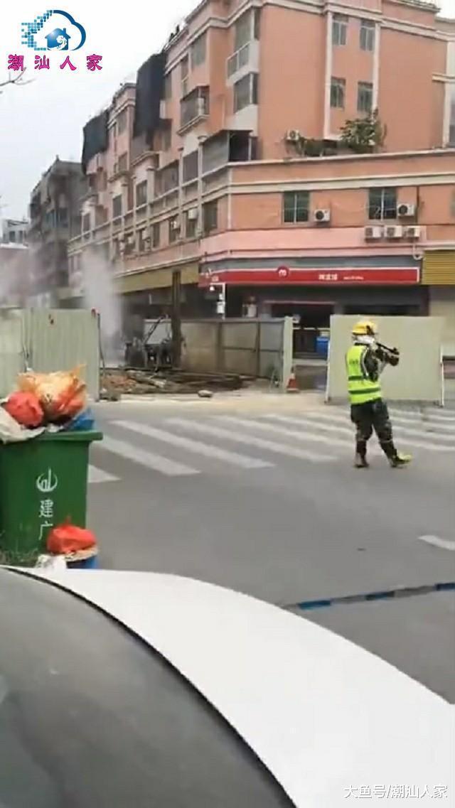 潮州發(fā)生一起天然氣管道泄漏事故, 現(xiàn)場(chǎng)拉起警戒線和疏散人群