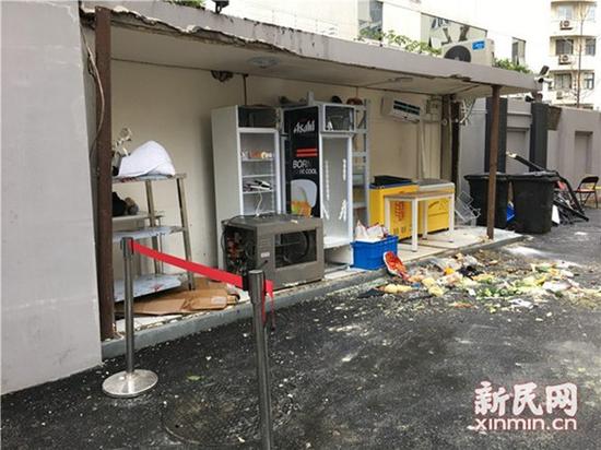 今天上午,新民晚報(bào)記者在事發(fā)現(xiàn)場(chǎng)看到,新閘路1039弄弄口人行道上,一臺(tái)挖掘機(jī)已對(duì)受損管道區(qū)域進(jìn)行開(kāi)挖,現(xiàn)場(chǎng)有燃?xì)鈸屝捃嚰皳屝奕藛T。而一旁弄堂門口的一間儲(chǔ)物倉(cāng)庫(kù)內(nèi)的冰箱、空調(diào)等物品在事故中損壞,冰箱內(nèi)的食物散落一地。此外,弄堂旁的一幢大樓外的PVC材質(zhì)的落水管斷裂,一片狼藉。據(jù)稱,現(xiàn)場(chǎng)一度曾有明火。
