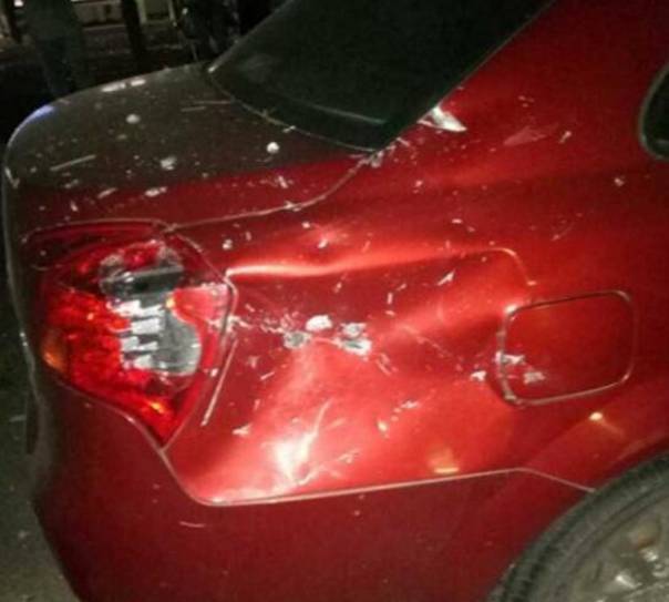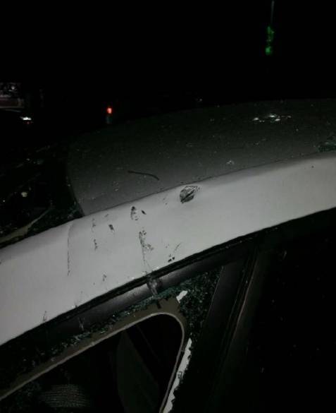 記者從現(xiàn)場視頻中可見,一家名為 " 誠信藥店 " 的店面玻璃門破損變形,里面的柜臺和房頂被炸得七零八落,地面一片狼藉。路上和門外兩輛轎車上散落著碎玻璃,車身因?yàn)樽矒舭l(fā)生凹凸變形,可見當(dāng)時的沖擊力很大。