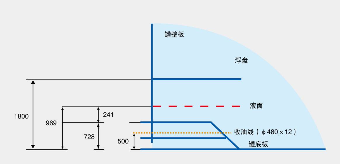 經(jīng)計(jì)算, 875#收油前罐內(nèi)浮盤(pán)與液面之間存在0.831米高度的氣相空間,體積約為1000立方米。