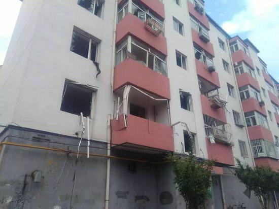 現(xiàn)場可以看到,此次爆炸的破壞威力較大,2-38號樓一單元共有10戶住宅,單從外表來看,已經(jīng)有7戶居民家的玻璃窗受損,周圍散落著大量的玻璃碎片,甚至有些玻璃碎片扎到了對面樓的墻體里。